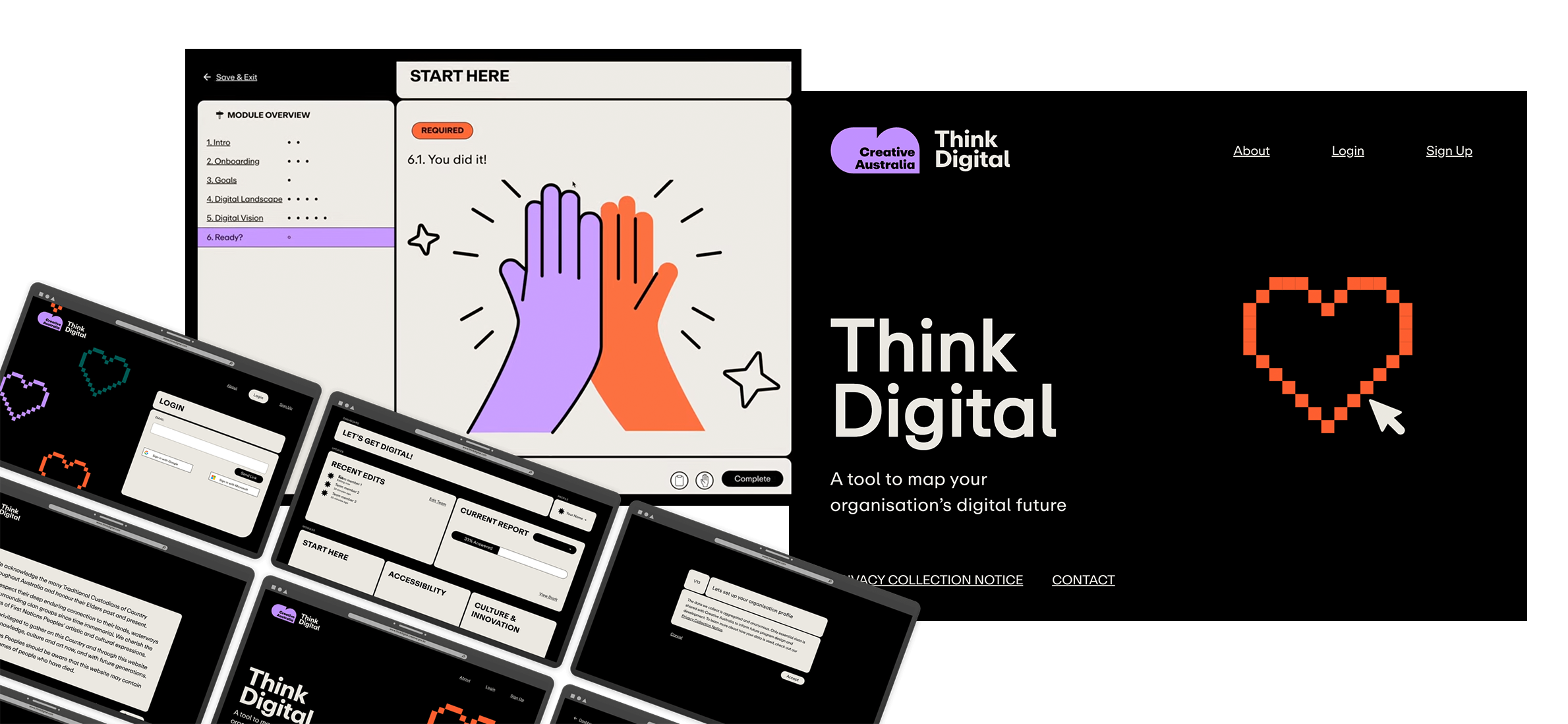 Think Digital is a self assessment tool for arts and cultural organisations, like art galleries or performance spaces, to help them gage internal capabilities and create an ongoing digital strategy for their organisation.